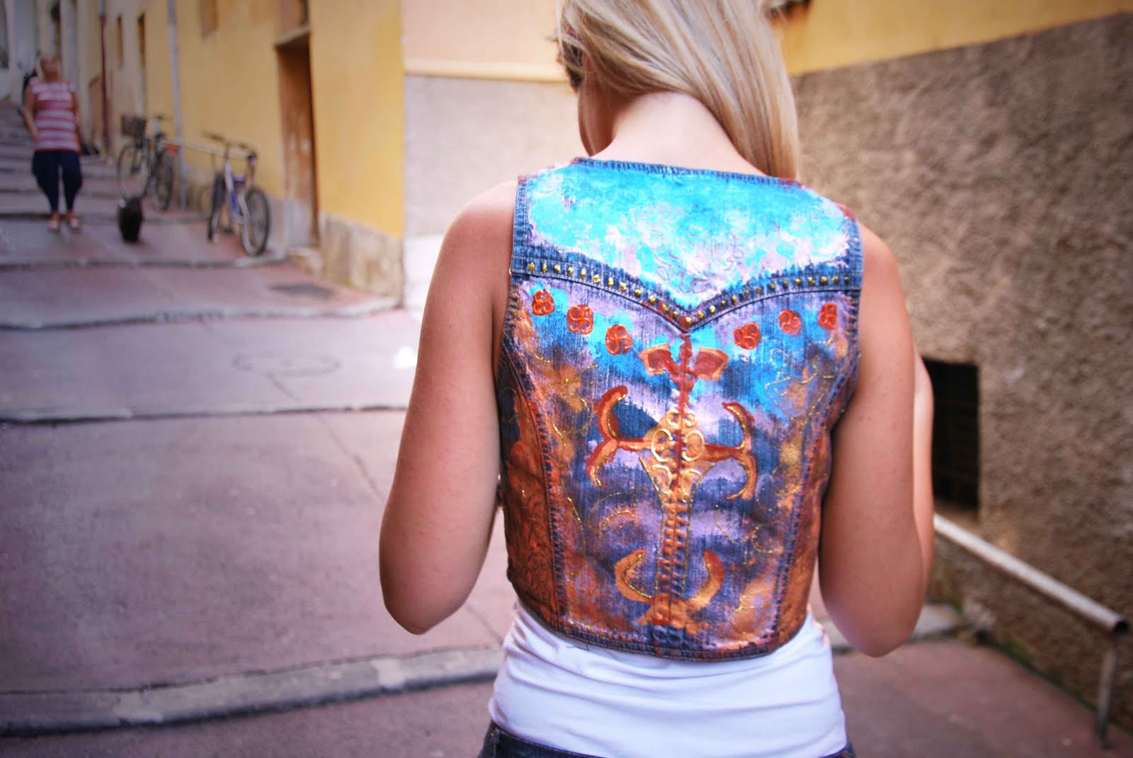 the denim vest looks so cool